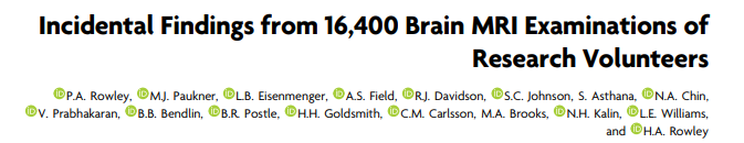 Howard A. Rowley, MD and colleagues publish “Incidental Findings from 16,400 Brain MRI Examinations of Research Volunteers” in the American Journal of Neuroradiology. The publication is the largest prospective data base of its kind.