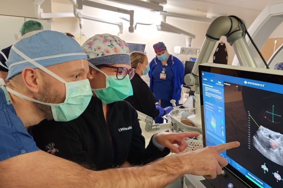A team of interventional radiologists, led by Erica Knavel Koepsel, MD, performed the first clinical histotripsy-based ablation in Wisconsin following Food and Drug Administration (FDA) approval of the procedure. It was also the first completed by a radiology department in the United States.