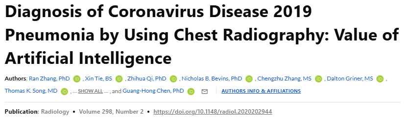 Ran Zhang, PhD, and his collaborators were the first group to publish work on the implementation of AI in diagnosing COVID pneumonia.