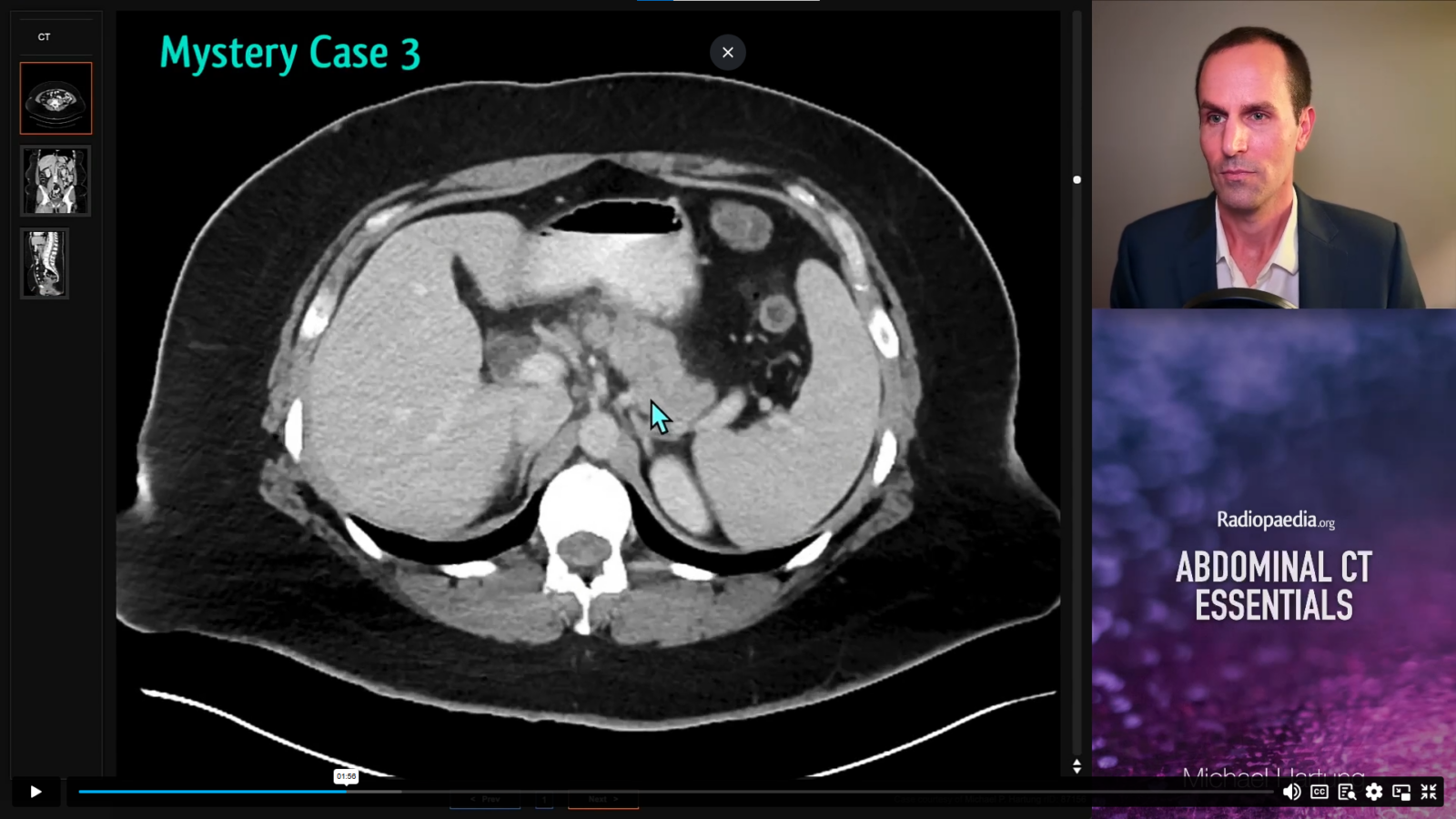 Michael Hartung, MD collaborated with Radiopaedia to launch a continuing medical education course, Abdominal CT Essentials, which covers abdominal CT protocols, search pattern, acute abdomen and cancer imaging. Through interactive cases and video lessons, Dr. Hartung addresses common diagnoses ranging from appendicitis and pancreatitis to liver tumors and cancer mimics.