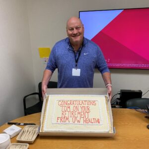 Radiologic Tech Lead for MRI Thomas McKinlay retired in January 2025 after working at UW Health for 31 years. Tom started his career at UW Health as a diagnostic radiology technologist. After a year, he went to CT for three years before finishing his career supporting MRI.